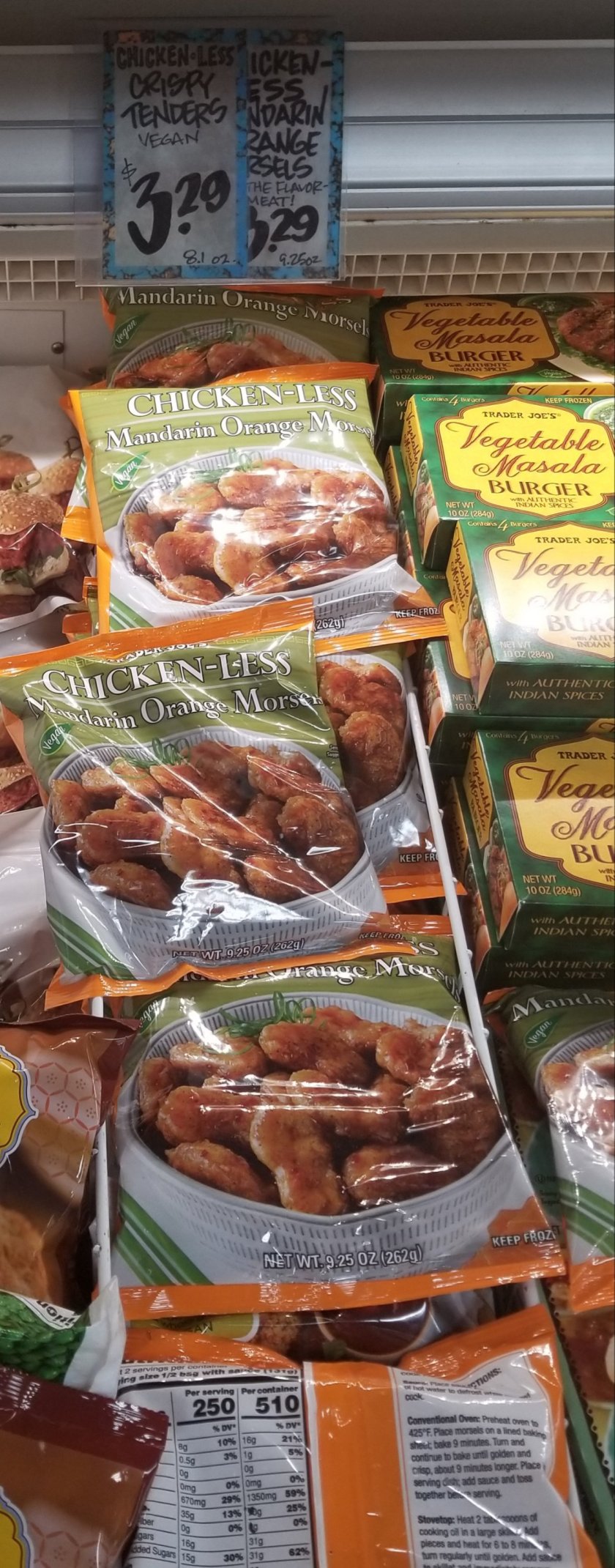 If you’ve been following along as I’ve posted recipes, you’ve probably noticed a lot of my ingredients come from Trader Joe’s. This is because Trader Joe’s is a vegan goldmine. Not only are there reasonably priced vegetables and fruits, they have delicious meat substitutes, prepackaged foods, and desserts. I am able to buy so much more at Trader Joe’s, rather than go to my local grocery store. We gladly drive 40 minutes to the nearest one, in order to stock up on our favorite items. Below are some of my must have items at Trader Joe’s. Keep in mind, that you can expect to walk in and load up on fresh veggies and fruits, as well as almond milk and other generic items, but these are my favorite items exclusive to TJ’s. 😊