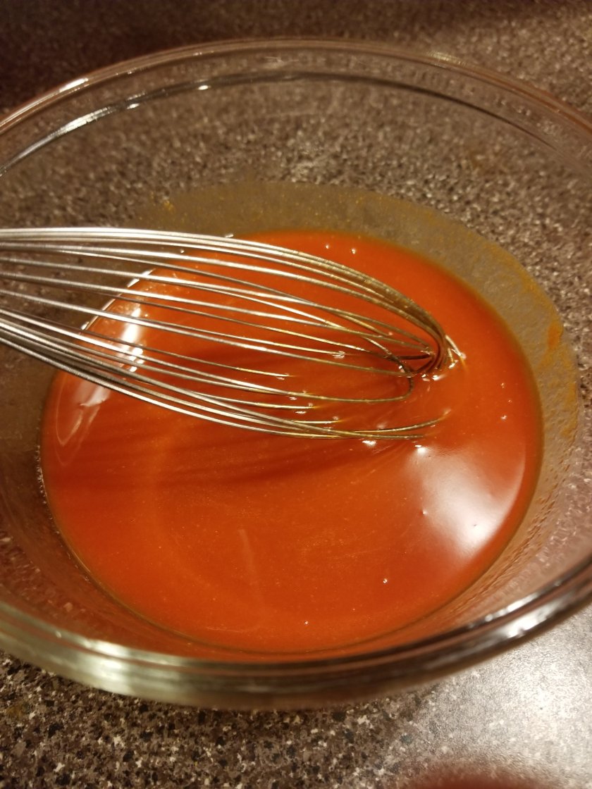 While the tofu is baking, prepare the sauce. Melt 2 tablespoons of vegan butter. Whisk it with the hot sauce, agave, and garlic powder. You can taste and add more agave if it is too spicy for your liking.