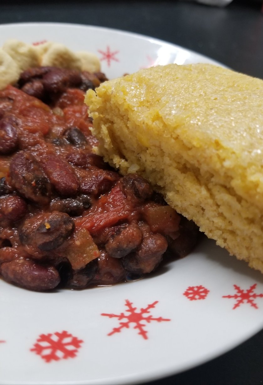 Does anyone just not like cornbread? (I guess if you don’t, you didn’t click on this post, huh?) When made just right, it has the perfect crunchy outer shell while the inside is soft. I love to eat it hot out of the oven with some three bean chili. The cornbread from the bakery of our local grocery store had so many ingredients! (Two of which were egg and milk.) You can make this cornbread using ingredients you keep in your pantry. (Or that you should have in your plant based pantry! See my earlier post for those tips!) I have tried several vegan cornbread recipes and I ended up combining a few things from each to come up with what I think works best.