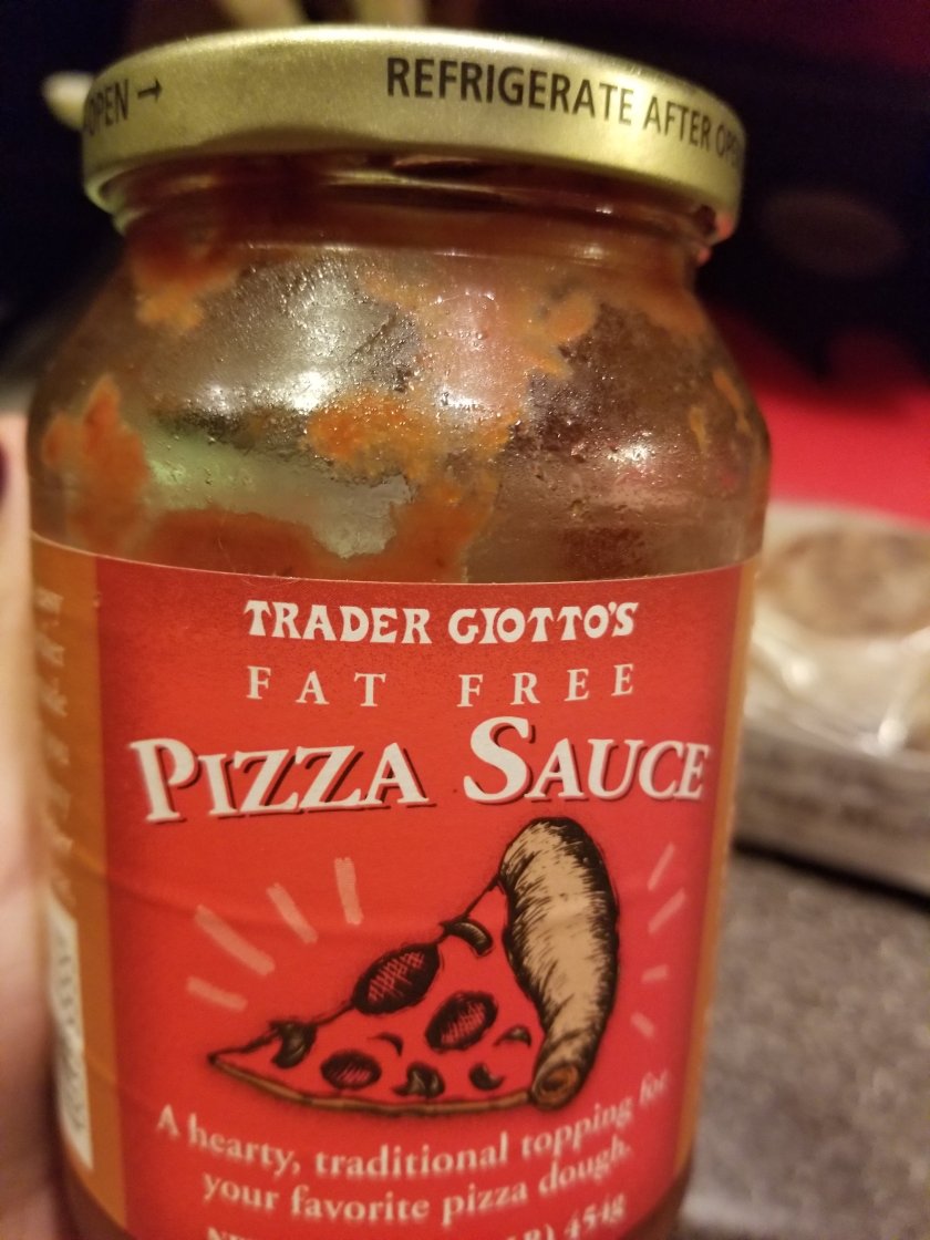 For the sauce, you can use any of your favorite jarred tomato sauces. It doesn’t necessarily have to be pizza sauce to work, but Trader Joe’s has a jarred pizza sauce that’s delicious and inexpensive. I happened to have some in my pantry.
