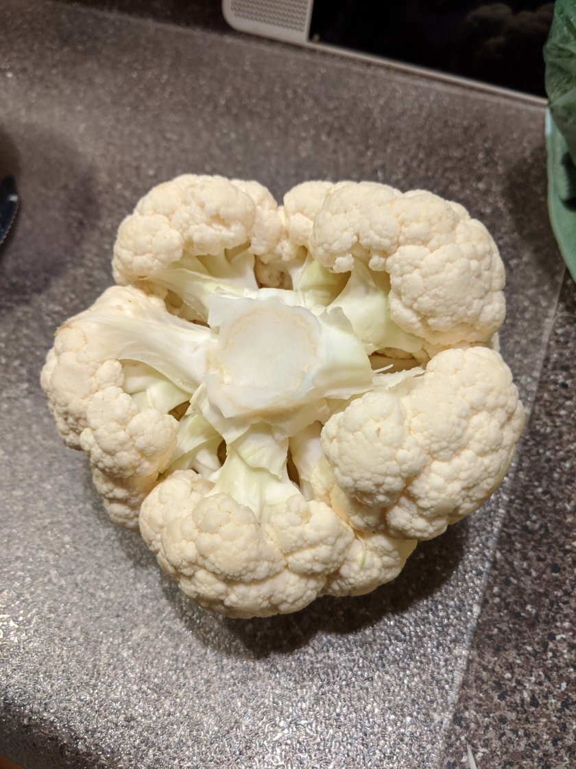 1 head of cauliflower, small or medium, trimmed of green leaves