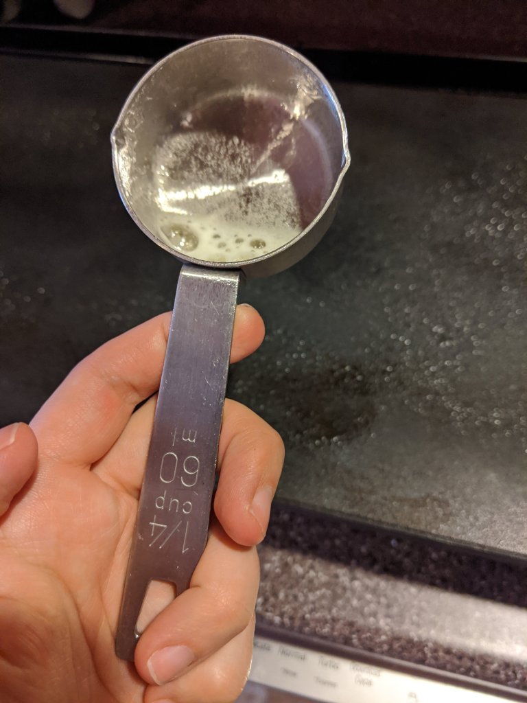 Generously coat a 1/4 measuring cup with cooking spray, as well.