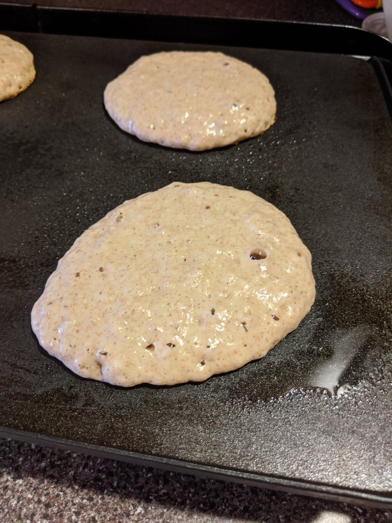 Repeat the process with remaining batter. Serve with a little vegan butter and maple syrup.