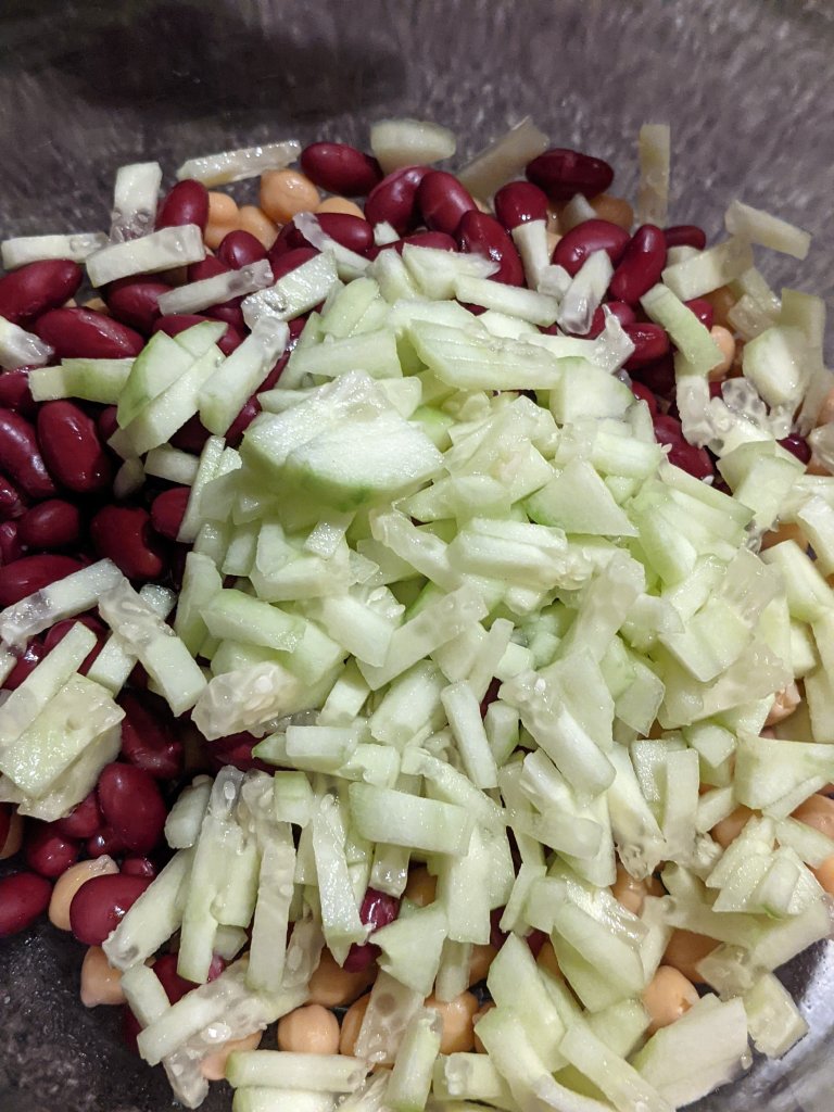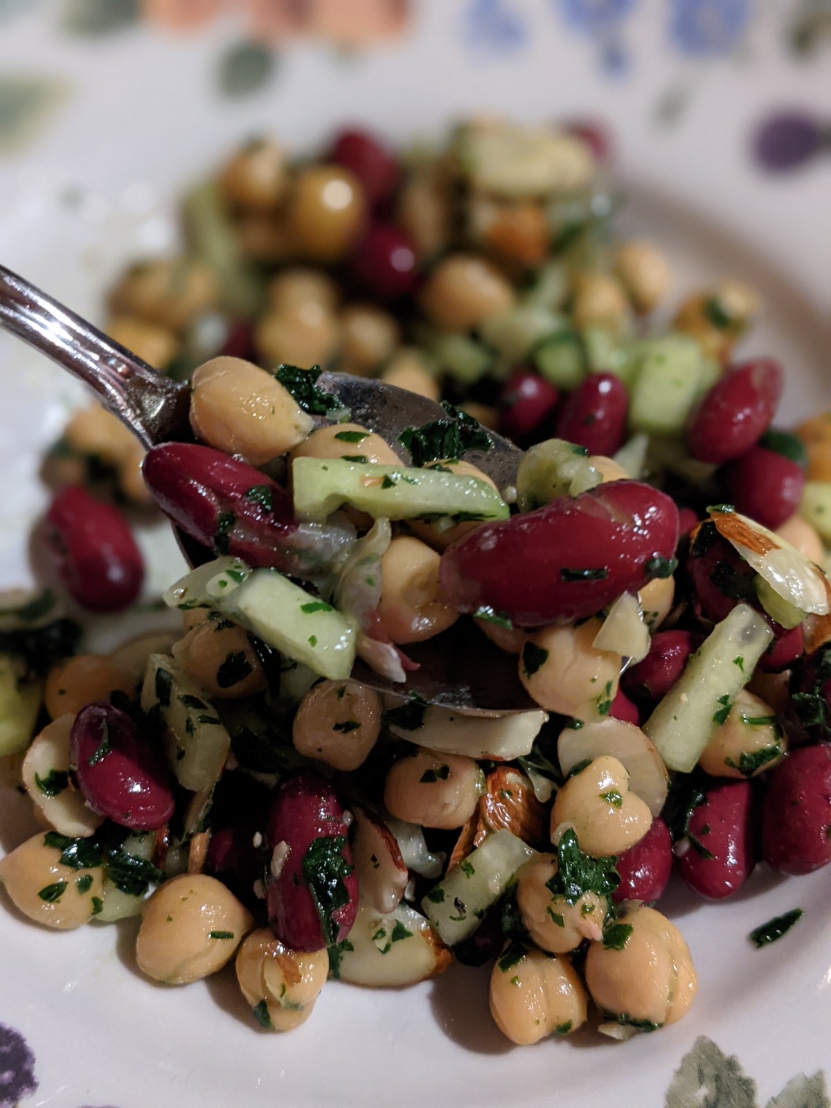This perfect summertime salad is vegan, gluten free, and so so fresh! It comes together in minutes and as it’s packed with protein, will leave you feeling full, but not weighed down. It’s great to make and bring to the family picnic, or if you’re craving something fresh and cool. No ingredient is too overpowering, and the almonds give it the necessary crunch. An added bonus, it’s very inexpensive to throw together!