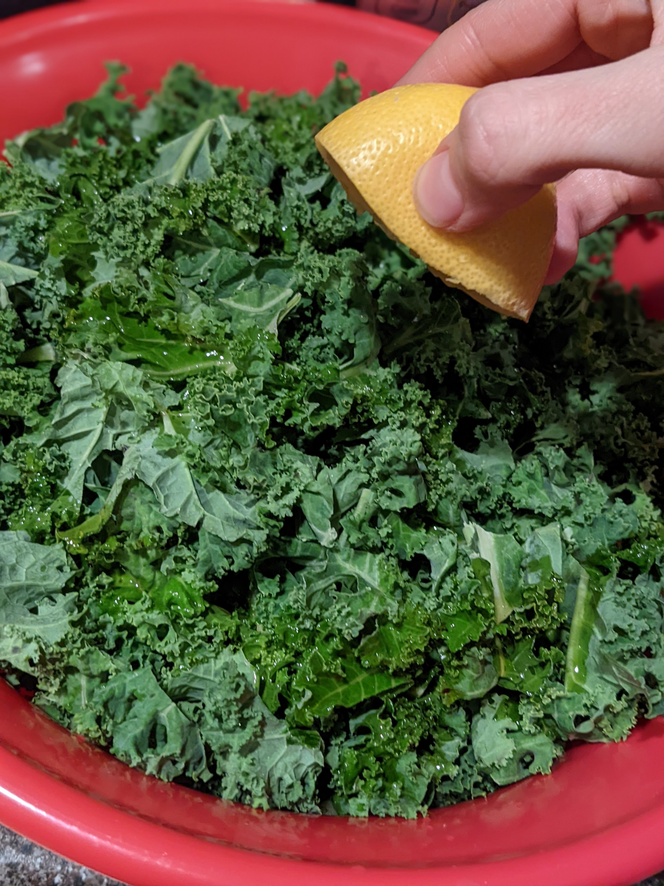 I had heard the phrase “massaging kale” on several cooking shows. I knew the gist of what it meant, but I didn’t think it was very important. One day I decided to make a kale salad with leftover kale and I thought, “Alright, I’ll try this out!” From that point on, I decided I’d never eat kale without massaging it first.